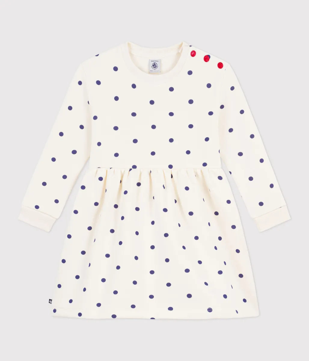 ドット模様がキュートな裏起毛の暖かワンピースです。ウエストの切り替えやギャザー、肩のロゴ刻印ボタンがデザインにアクセントをプラスしています。リラックスタイムから就寝まで、おうち時間を快適に過ごせるおすすめアイテムです。姉妹でお揃いコーデも楽しめます。
