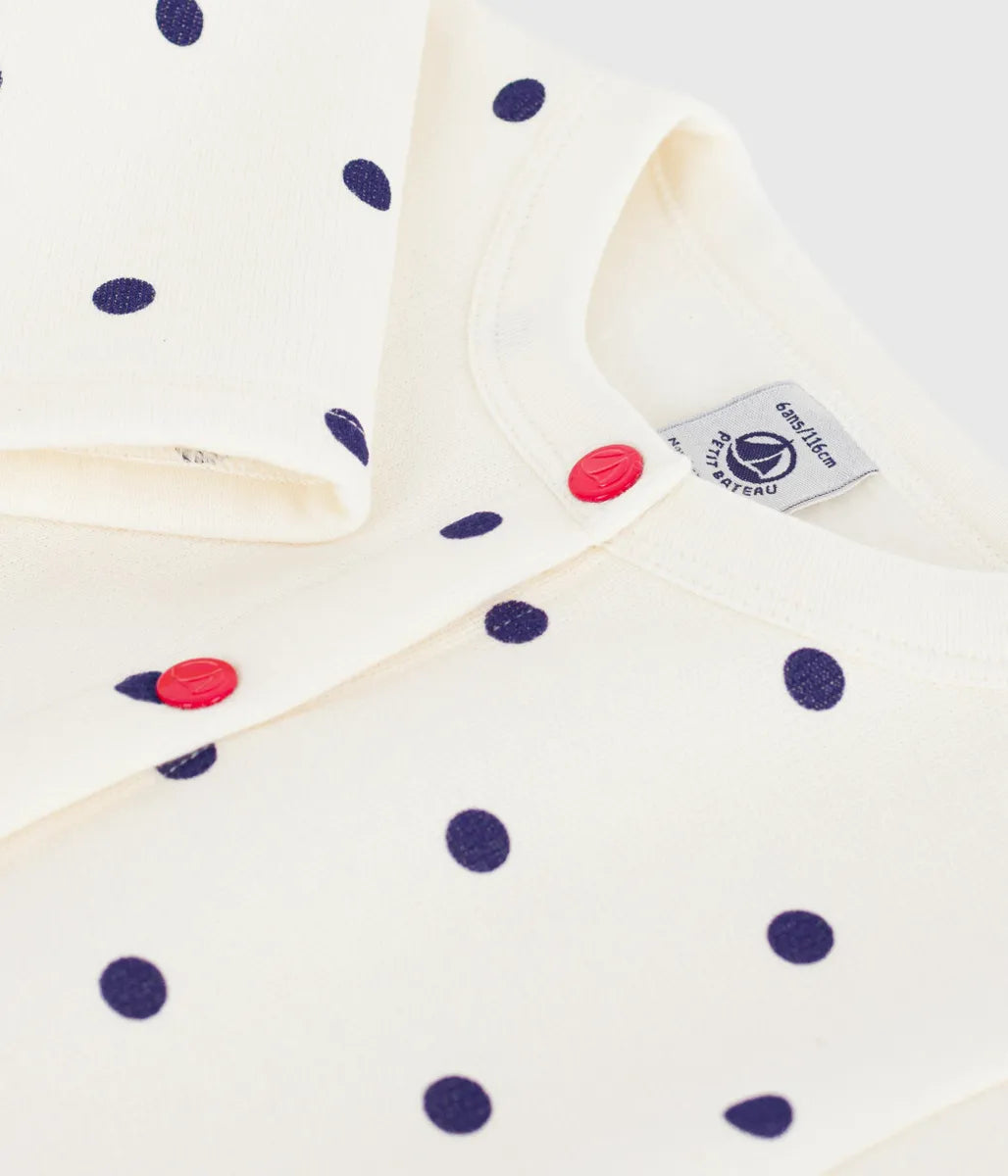 愛らしいドット柄が目を引くカーディガンです。赤いブランドロゴ入りボタンがアクセントをプラス。これ一枚でも、インナーとしてもシーズンを通して着回せるおすすめアイテムです。揃い柄のアイテムとのセットアップや、きょうだいとお揃いコーデも楽しめます。